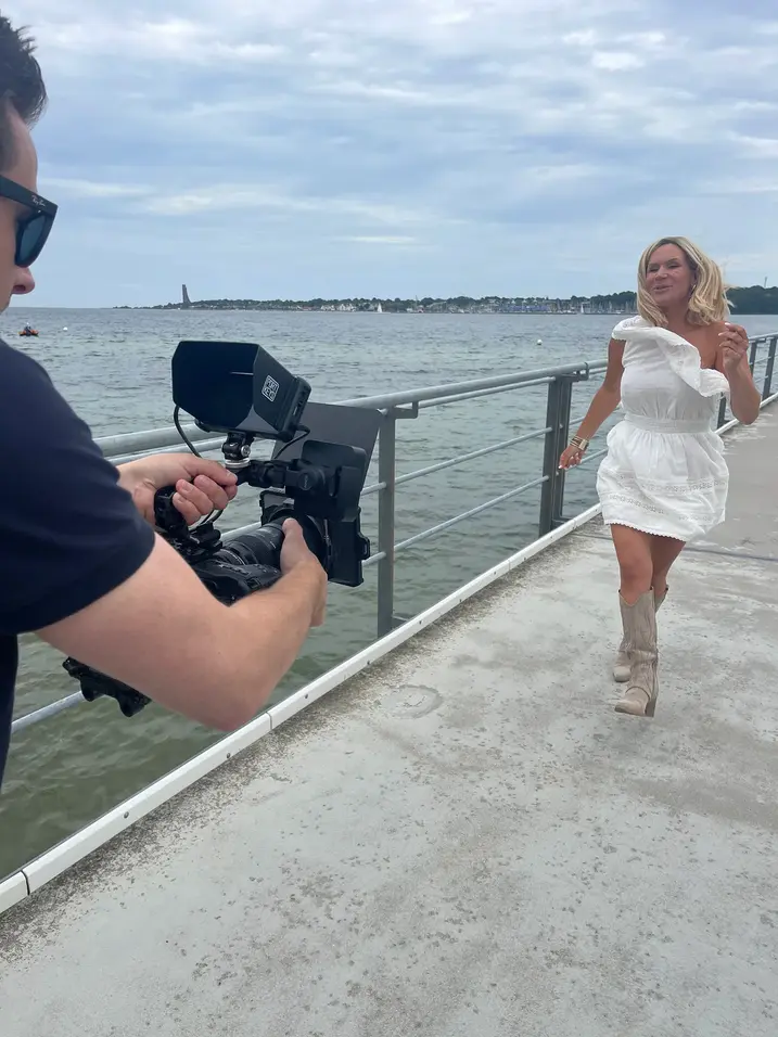We deliberately kept the space open for ‘HYPE’. Shot on Falckensteiner Strand in Kiel, between the jetty, dunes and sea, we created a music production video that is not controlled, but allowed to happen. Kaya moves freely in the water, on the jetty, in front of spectators and curious onlookers. The jump into the water at the end? Not a show effect, but a real moment in the dynamic music video.